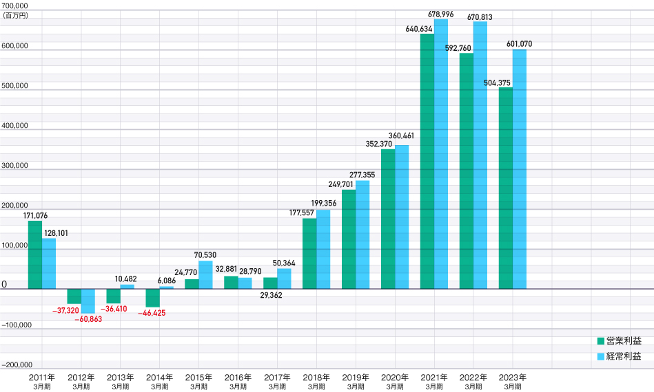 | 営業利益 | 171,076 | −37,320 | −36,410 | −46,425 | 24,770 | 32,881 | 29,362 | 177,557 | 249,701 |