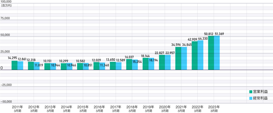 | 経常利益 | 22,957 | 34,845 | 44,330 | 51,369 | 59,422 | ||||